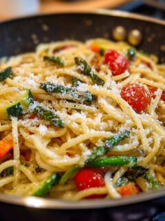 This Spaghetti Aglio e Olio is best served piping hot, right out of the pan! I love to top mine with a generous sprinkle of fresh parsley and a dusting of grated Parmesan cheese, though it’s absolutely delicious all on its own. A simple side salad with a light vinaigrette is also a lovely addition if you want to round out the meal. If you happen to have leftovers (which is rare in my house!), just pop them into an airtight container in the fridge. To reheat, I usually give it a quick warm-up in a skillet with a tiny splash of water or olive oil – it helps revive that lovely saucy texture. You can also use the microwave, but the skillet method is my favorite for bringing it back to life! Find more easy dinner ideas here!